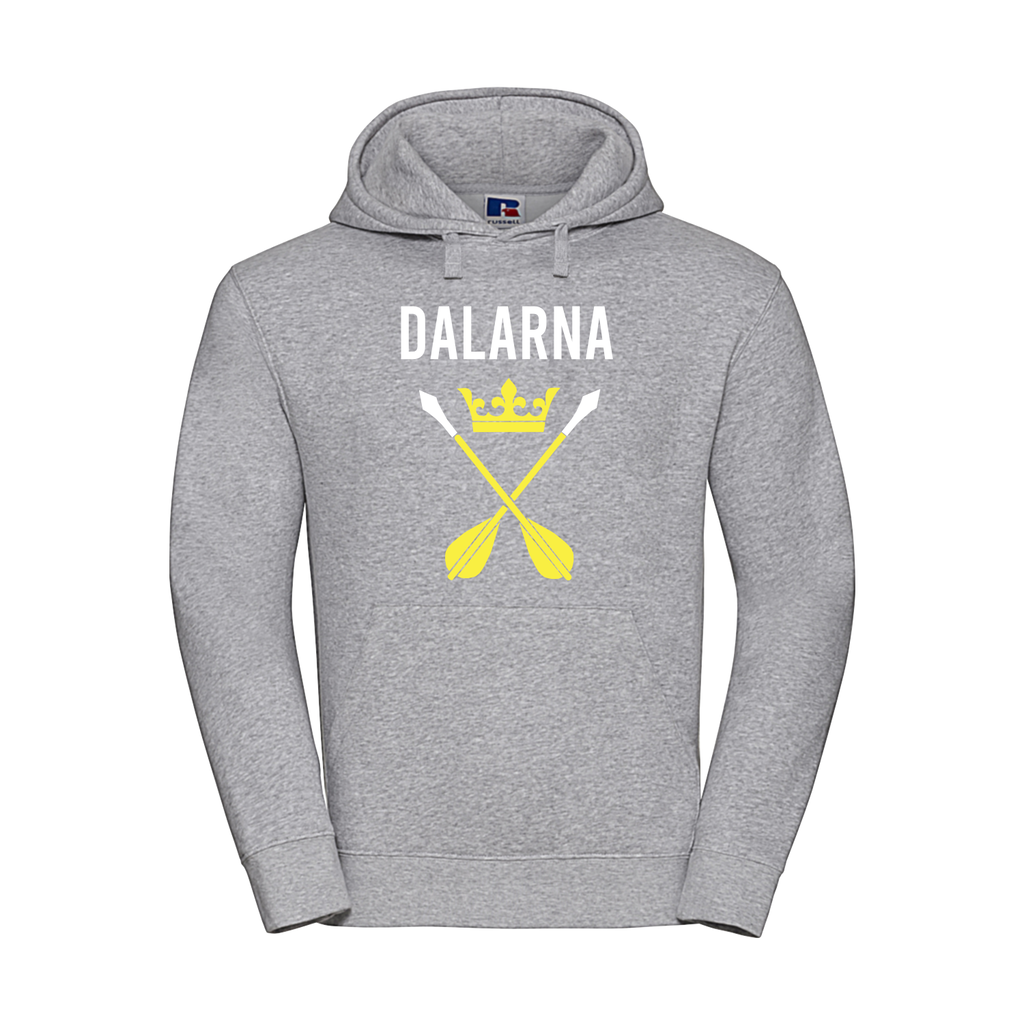 Hoodie - Hoodie mit Motiv Dalarna und der Landschaftsfahne "Dalpilarna". Ein wunderbar warmer und kuscheliger Kapuzenpullover in einem Unisex-Modell. Känguru-Tasche am Bauch, flache Schnüre in der Kapuze, gerippte Manschetten an den Ärmelenden und unten. Material: 100% Polyester Wäsche: 60 Grad Zertifizierung: Oeko-Tex