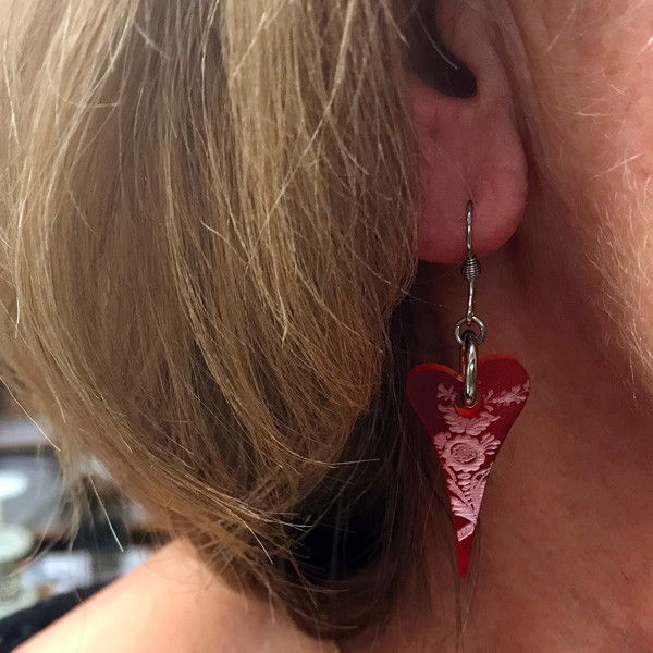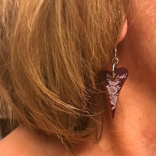 Ohrringe mit Herz aus Plexi mit Kurbitsgravur