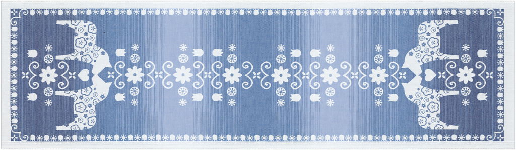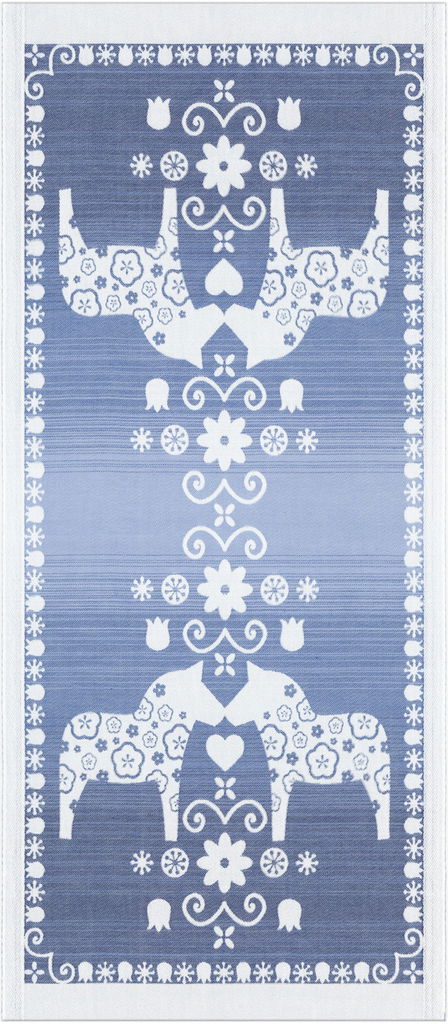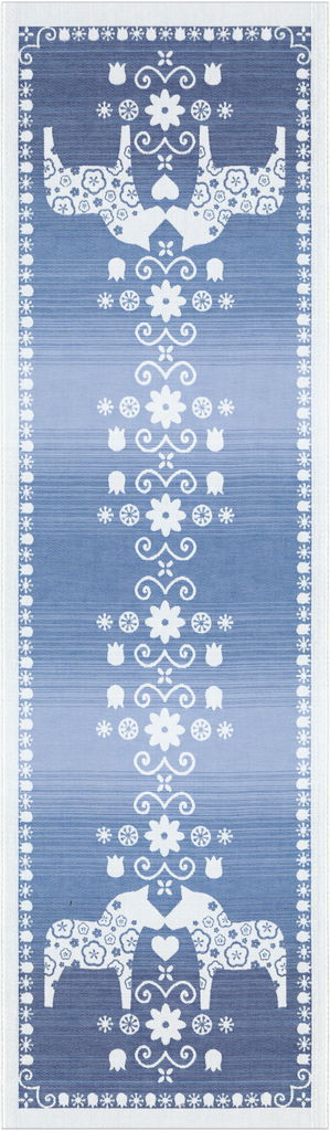 Table runner in a classic Dala-inspired model with Dala horses. Give the table that little extra with the runner that you can place directly on the table top or on a tablecloth. With runners, you create a classic and homey atmosphere at the table. The runner is placed on the center of the table and lies nicely over the table. The table runner is made of 100% organic cotton and is easy to maintain. It fits perfectly with other organic fabrics from Ekelund. One for you and one as a gift for someone who just like you appreciates high quality and beautiful patterns. Size: 35x120 cm Material: Organic cotton Colour: Light blue