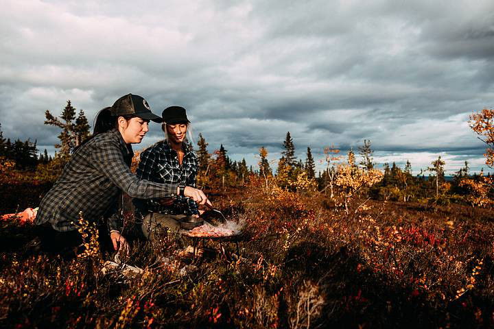 Stekhäll i svenskt kvalitetskolstål, lättviktsmodell, som kommer med en specialanpassad väska med ett unikt bärsystem som är smidig att ta med sig på turen. Med bärremmar kan man smidigt använda väskan som en ryggsäck eller som en axelväska. Denna storlek är ypperlig till solovandraren eller paret. Den fungerar bra även för det lite större sällskapet om man väljer att laga maten i omgångar. Stekhällen har ett brett användningsområde och man kan tillaga allt från en enklare lunch till en fin gourmetmiddag. Eller varför inte en dessert! I väskan ingår ett sittunderlag i återvunnen merinoullblandning. De justerbara bärremmarna har hakar som gör att dem lätta att ta av och på. På väskan finns även extra fästpunkter som gör att väskan kan kopplas till exempel till en vandringsryggsäck, kanot eller dylikt. Väskan är tillverkad av återvunnen polyester med florkarbonfri impregnering. Läderdetaljerna är av vegetabiliskt garvat läder från Tärnsjö Garveri. Information om stekhällen: • Stekhäll Ø 30 cm för 1-2 personer. Lättviktsmodell • För matlagning över öppen eld eller med gasolbrännare • Hällen är lätt skålformad för att passa många olika maträtter • Stålyta för bästa stekegenskap, rengöring och underhåll • 3 st avtagbara ben designade för smidig montering • Benlängd: 18 cm • Vikt: 1,3 kg • Tillverkad i Sverige av svenskt kolstål Information om Väska för stekhäll: • Avtagbara och justerbara bärremmar för väska, kan bäras som axelväska och ryggsäck. (Tillval) • Ytterficka för förvaring av tändmaterial, friluftskniven m.m. • Separat innerficka för benförvaring • Tvättbar innerpåse för stekhäll • Fack för sittunderlag. 1 x sittunderlag ingår i kitet. Upp till 5 sittunderlag får plats i väskan och kan köpas som tillbehör.