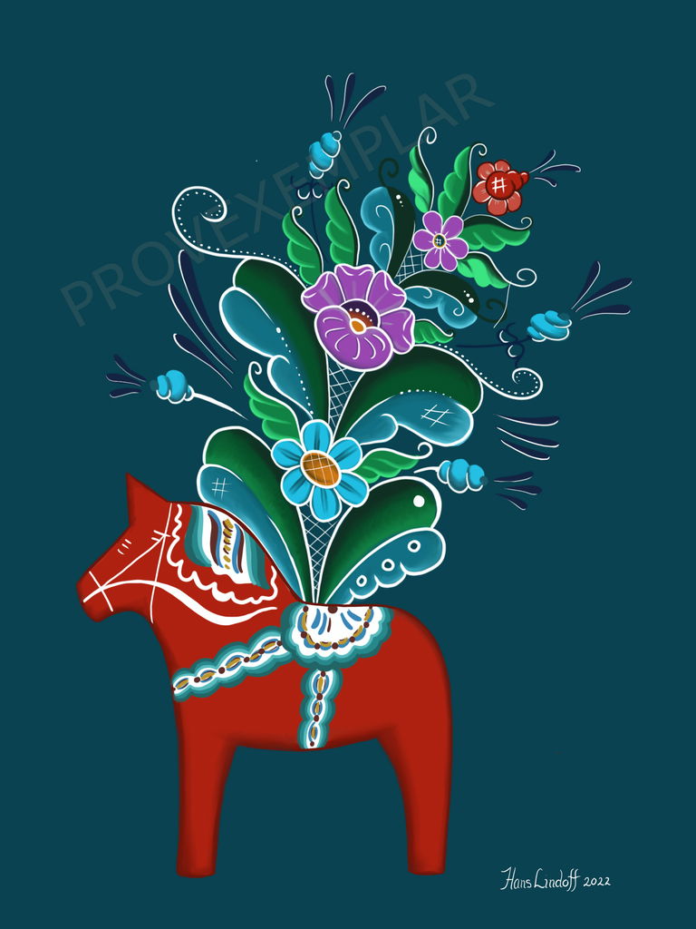 Canvastavla med motiv av Dalahäst & Kurbits framtagen av konstnären och den grafiske designern Hans Lindoff i Falun. Hans som har sin egen tatuerarstudio "Purplehazstudio" i Falun har skapat konst i hela sitt liv. Det började i ungdomen med grafftti för att sedan övergå till att på uppdrag skapa stora väggmålningar och annan konst. Tavlorna tryckta på Canvasduk 400 gram i format 30x40 cm, 50x70 cm eller 70x100 cm färdiga monterade på kilram bara att hänga upp på väggen.