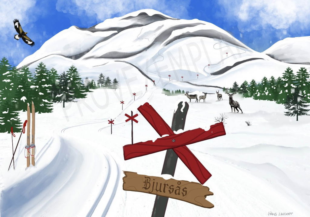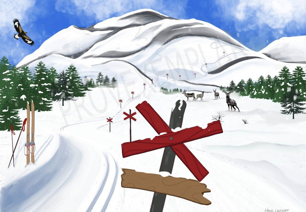 Canvastavla med ett härligt vintrigt fjällmotiv med ledmarkeringar så kallade "ledkryss" med skylt där du själv kan ange vilken text du vill ha på din skylt på just din tavla.