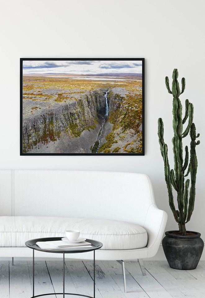 Canvastavla med motiv av Njupeskär, Sveriges högsta vattenfall med sina 93 meter, varav 70 meter fritt fall. Det är Njupån som kastar sig ut i en mäktig fors nedför Fulufjället som är ett populärt och lättillgängligt besöksmål sommartid och även vintertid letar sig många till fallet för att se när isen bygger ett skimrande pansar kring vattenfallet. Canvastavla uppspänd och monterad på kilram, tryckt efter ett originalfoto av Per Eriksson, Falun. Finns i format 30x20 cm, 60x40 cm, 100x60 cm upp till det stora formatet 120x80 cm.