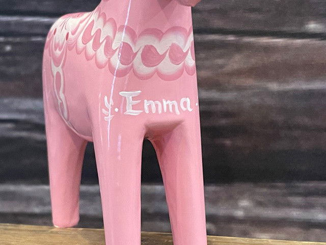 Dop/Namngivningshäst med text - Namn och datum. En riktigt stilig Dalahäst som blir ett minne för livet, ett rent hantverk från Mora. Ange vad du vill ha textat på hästen i textfältet här bredvid.