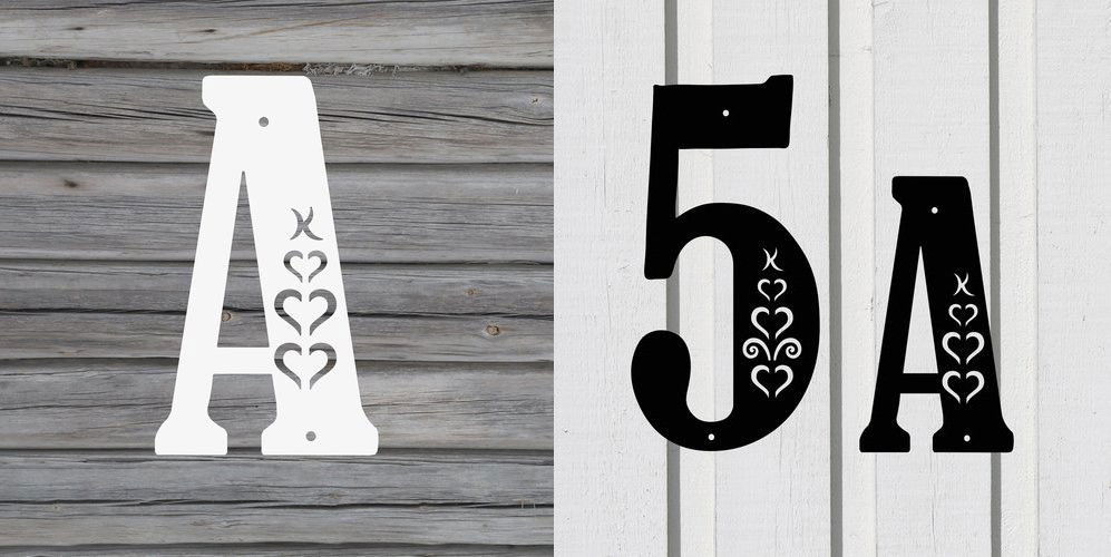 Bokstäver i storlek 24x14,5 cm i en storlek som matchar fasadsiffrorna i samma stil och serie (Produkt 33-05). Ett blickfång tillsammans med t.ex. en siffra. Ett smycke på huset samtidigt som den har en funktion. Finns i färgerna svart och vitt. Miljövänlig ytbehandling i vit eller svart. Behandlad för att stå emot väder och vind. Levereras i transparent förpackning.