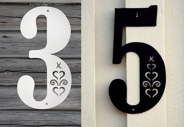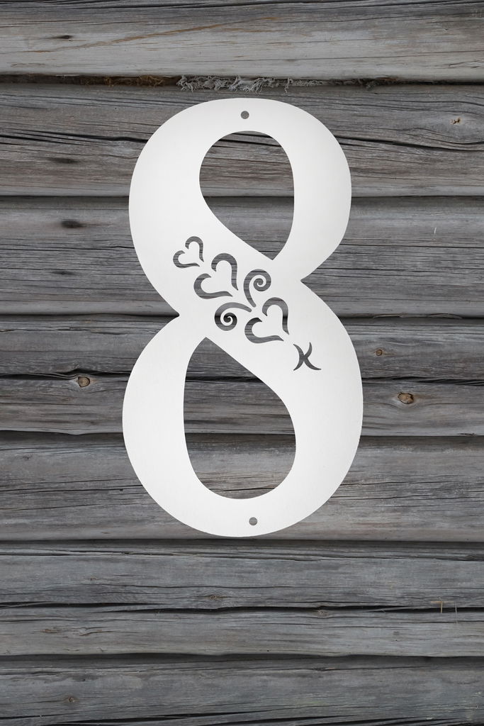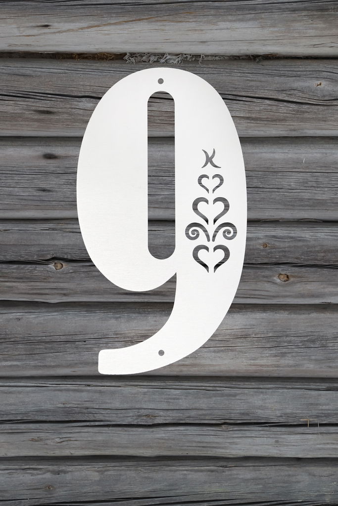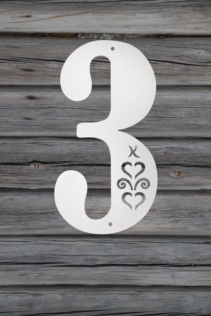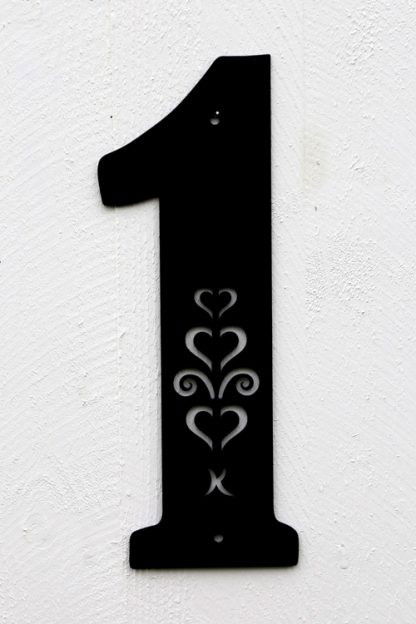 Fasadsiffror med hjärtespira. 18 x 33 cm.