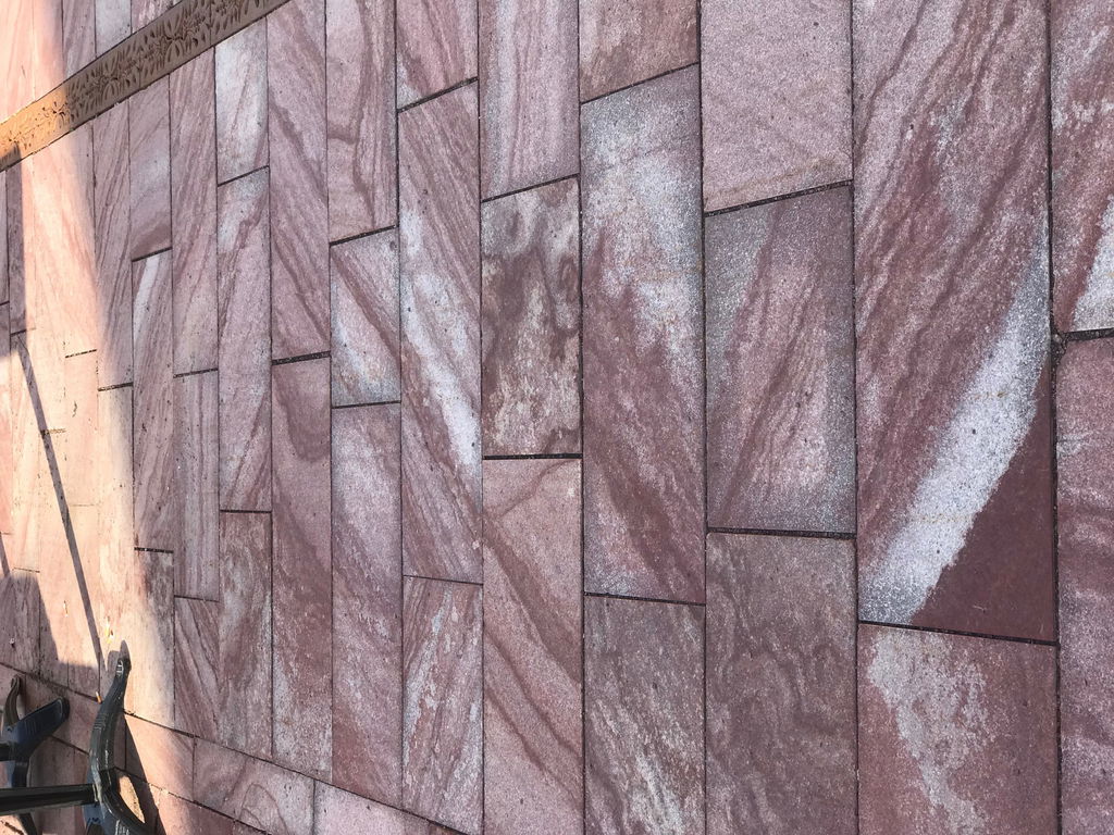 Flammade plattor av Älvdalskvartsit lämpliga för uteplats