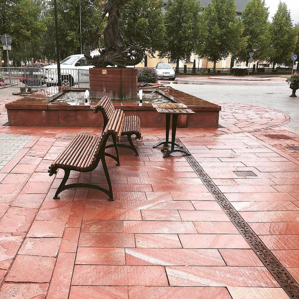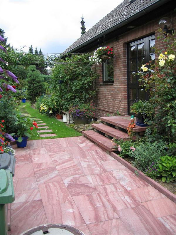 Beskrivning av Flammade plattor av Älvdalskvartsit lämpliga för uteplats