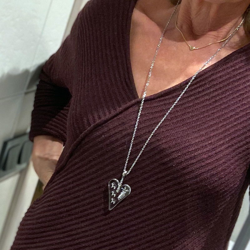 Halsband - Hjärta med kurbits gravyr och tre utskurna dalahästar, modell Herta