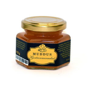 En härlig hjortronmarmelad producerad av Muddus Hjortron i Kolarbo utanför Avesta. Ingredienser: Hjortron 50%, sockerhalt 50% varav tillsatt 48%, förtjockningsmedel:pektin, citronsyra, konserveringsmedel: natriumbensoat, Öppnad förpackning förvaras i kylskåp. Näringsvärde per 100g: Energi1102kl/263 kcal, fett0,35g varav mättat fett 0,03g, kolhydrater 62,5g, protein 0,5g, salt 0g.
