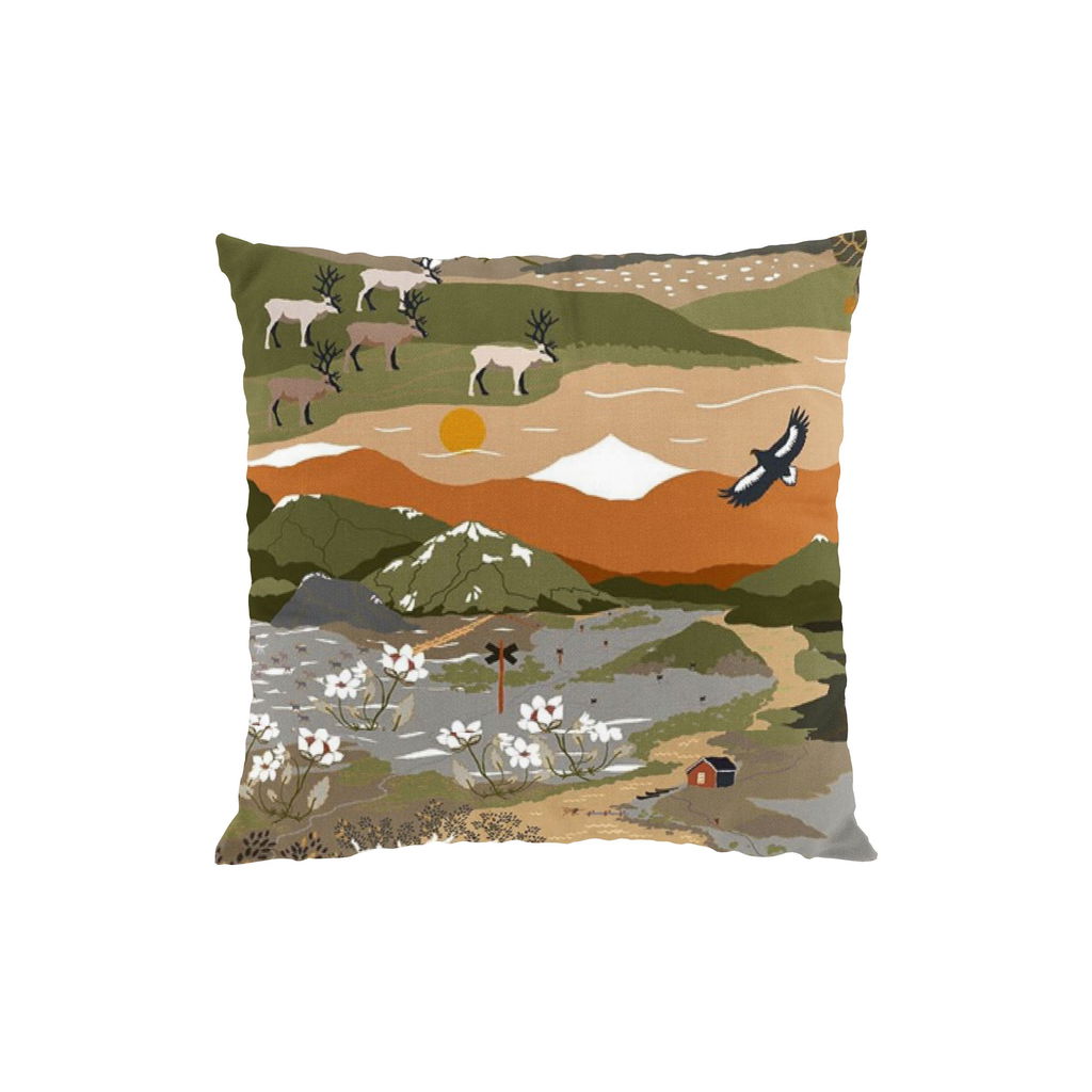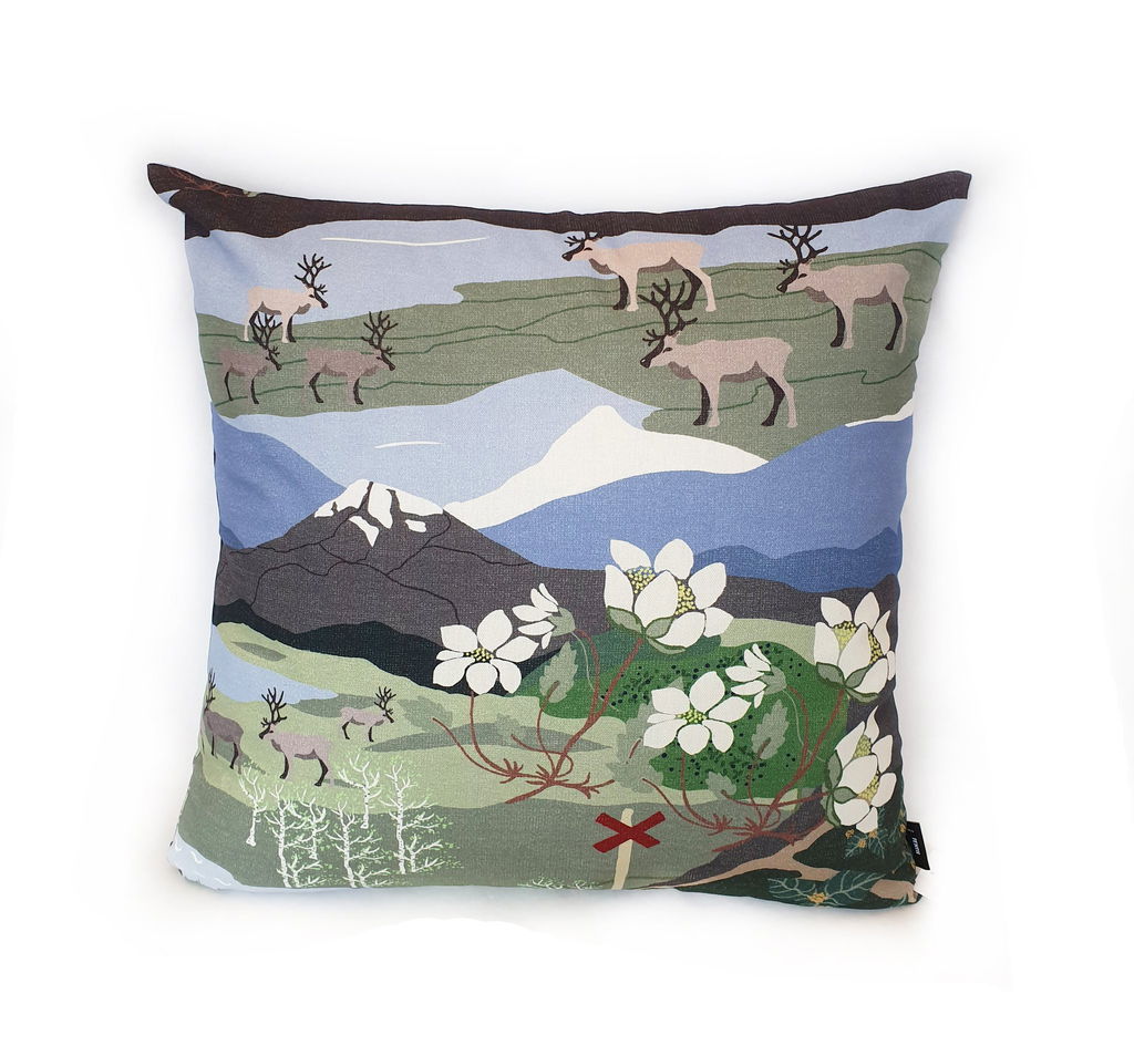 Sälen, Idre eller Grövelsjön, vilket natur och fjällområde är din favorit? Alla har vi vår favoritplats här i serien Fjällvandring, ett härligt och vindlande naturmotiv med fjäll, renar och de klassiska röda ledkryssen. Välj mellan tre olika färger. Design: Louise Videlyck. Material: 100% Bomull Mått: 47 x 47 cm, innerkudde 50x50 cm rekommenderas Tvättråd: 40° Bilderna är en inspirationsbild från leverantören, beroende på från vilken del av metervaran av tygen de syr upp respektive kuddfodral kan mönstren bli olika från gång till annan, produkten kan därför komma att skilja sig något från bilden.