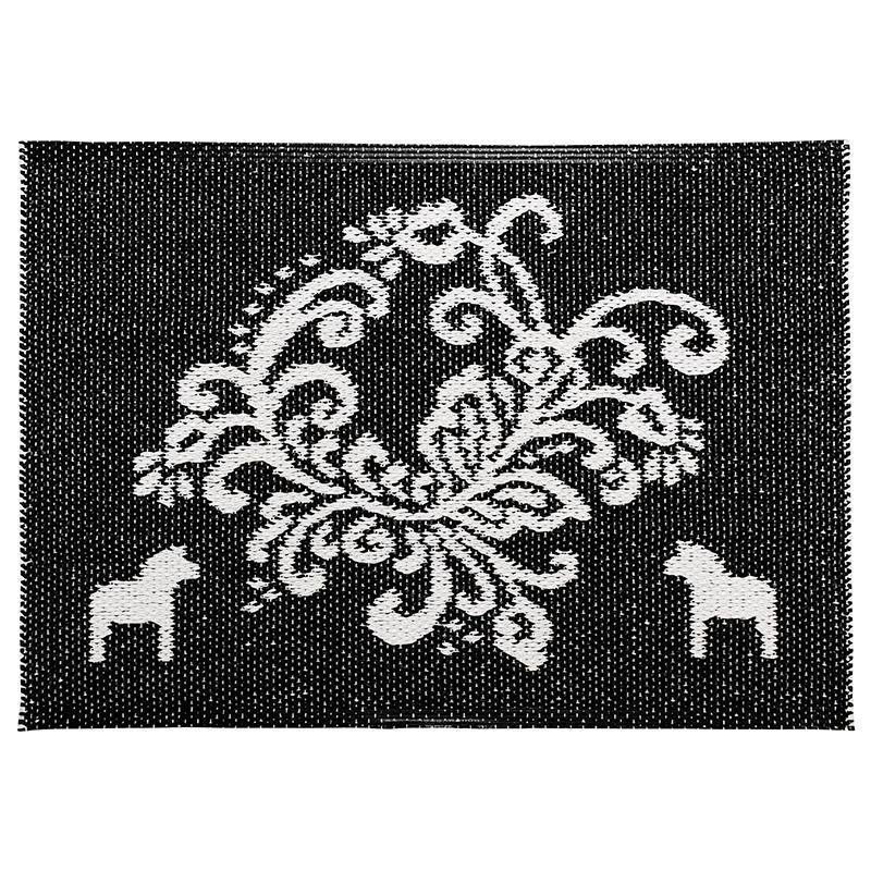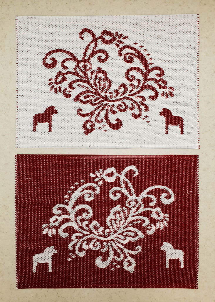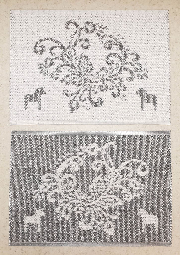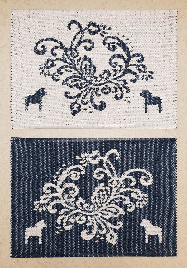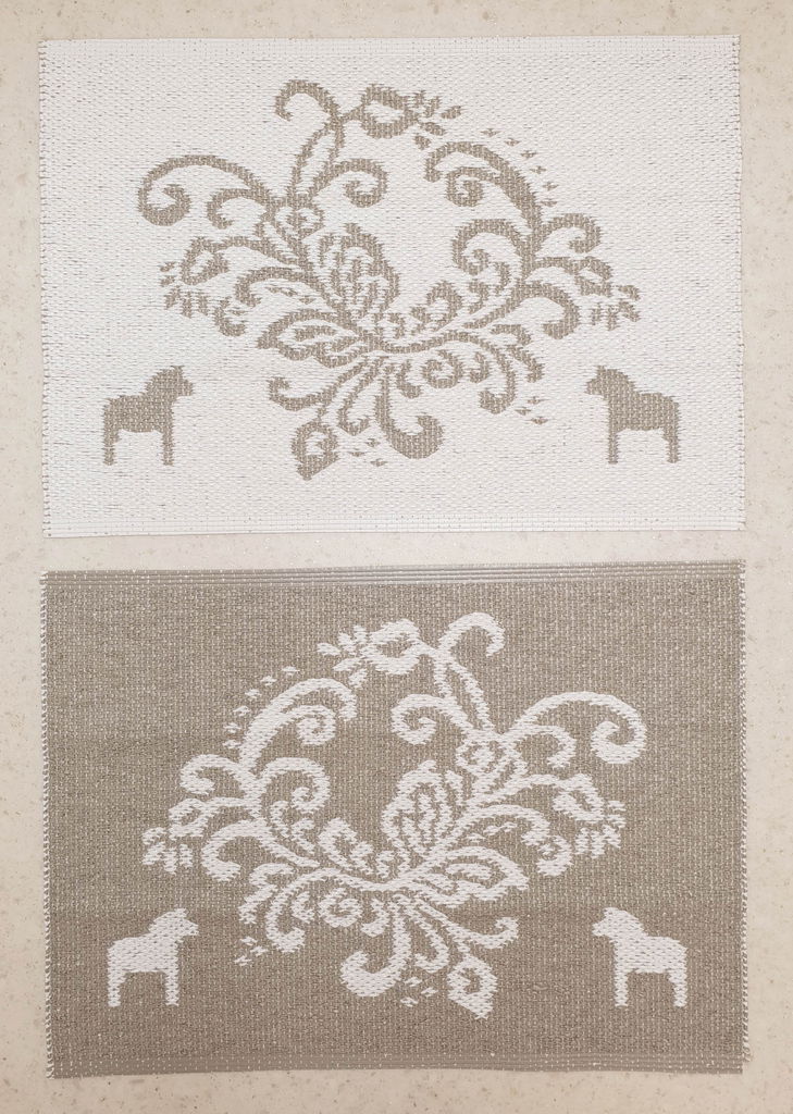 Kurbits dörrmatta i tålig vinyl med klassiskt mönster och motiv av dalahästar, svensktillverkad och från svenska Arvidssons Textil. Mattan är vändbar med motsatta färger på den ena sidan - det är som att få två olika mattor i en! Den har ett underbart mönster med kurbits och dalahästar på och är tillverkad i Sverige av Horredsmattan. Dörrmattan är perfekt hemma, på lantstället eller varför inte ge bort den som present!