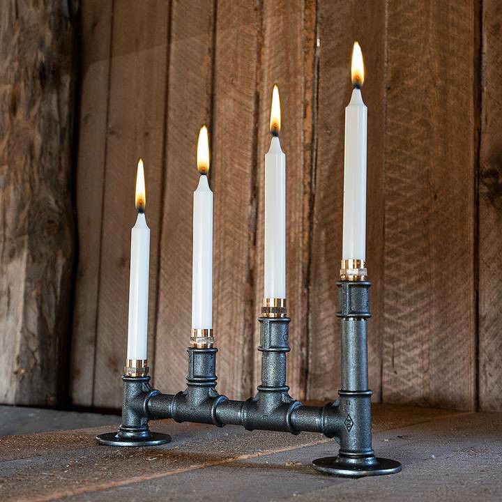 En unik ljusstake med plats för 4 ljus i olika höjder. Tetra är gjord av ihopskruvade rördelar av industriell kvalité, den står stadigt tack vare sin tyngd. Denna ljusstake passar bra både som adventsljusstake och som en vanlig ljusstake. Längd: 39 cm Bredd: 9 cm Höjd: 22 cm Vikt: 2,3 kg