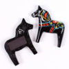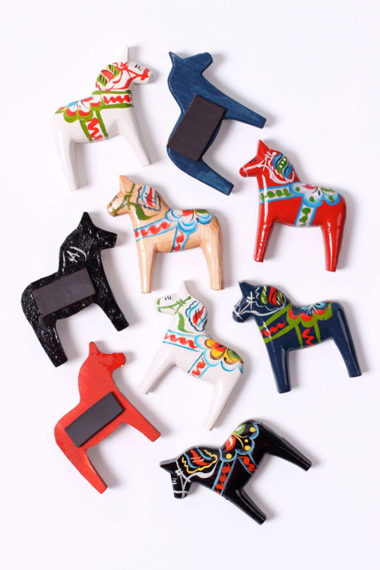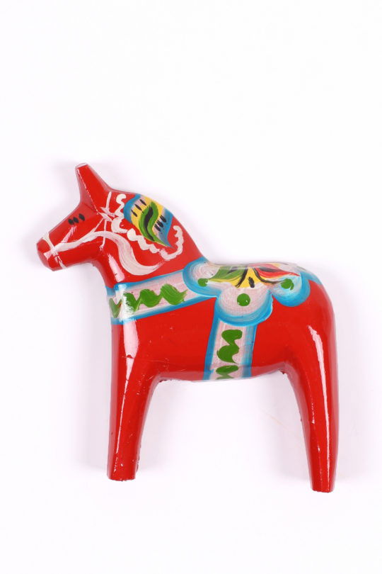 Dalahäst magnet, 5 cm. Sågad i bandsåg, täljd och målad för hand precis som alla Dalahästar. Alla produkter är unika, allt görs för hand och varje häst har sin egen prägel. Det finns alltså inte två exakt likadana hästar i världen, precis som det skall vara med ett riktigt hantverk.