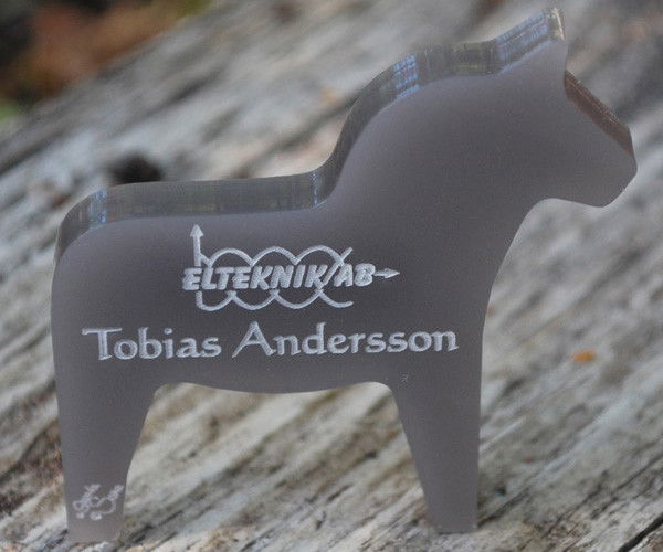 Namnbricka i 6 mm tjock plexiglas med nål för fastsättning på exempelvis kläder. Storlek 50 x 50 mm. Välj mellan flera olika färger Text och gravyr ingår i priset, exempelvis namn och logotype. Ange din text i meddelandefältet i kassan vid betalning. Önskar du egen logotype skall denna mejlas till oss separat.