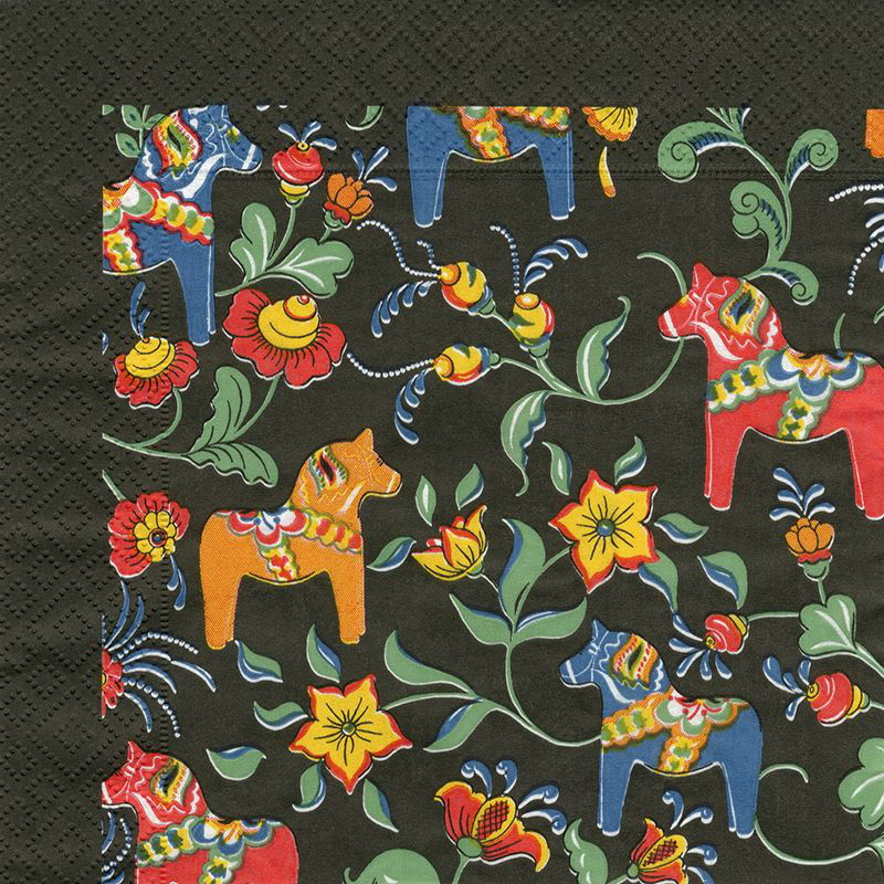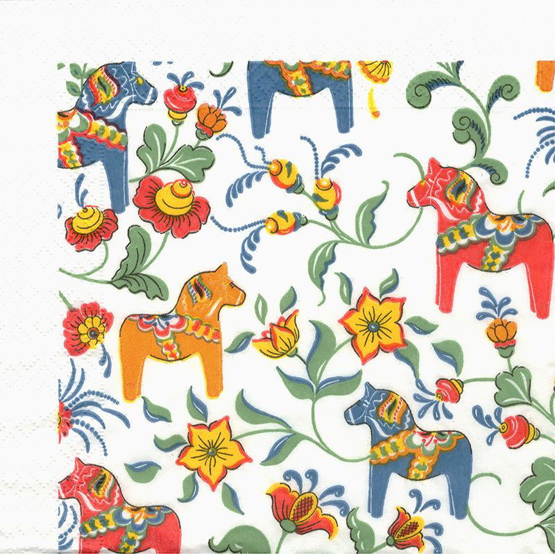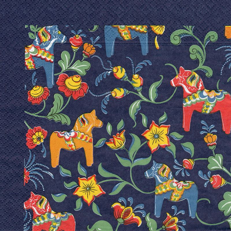 Servetter Leksand Mini kommer från Svenska Arvidssons textil med deras populära mönster av dalahästar nu i servettform! 20 st 3-lagers servetter i varje förpackning. Välj mellan olika färger. Antal: 20 st/förpackning Mått: 33x33 cm