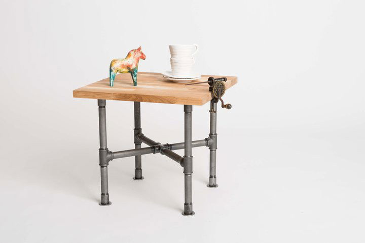 Kraftigt sidobord med bordskiva av massiv ek. Bordet utstrålar en rustik och industriell känsla och passar lika bra bredvid sängen som soffan. Bordet har justerbara fötter för ojämna underlag! 50 x 50cm Höjd: 47cm