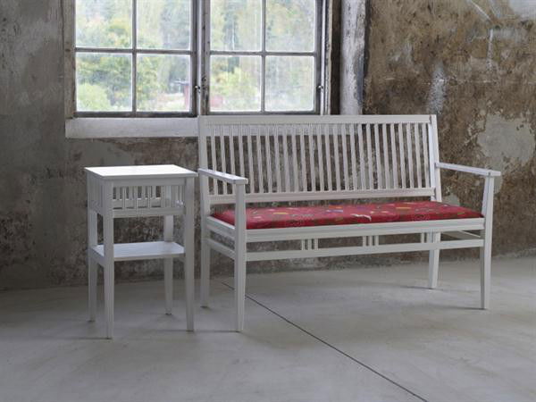 Leksandssoffa vitmålad massiv björk med klädd sits. I Leksandsstolen förenas stilren elegans med krav på hållbarhet och funktionalitet. En svensk handtillverkad stol som möjliggör hög precision i varje del och tidlös elegans för alla hem. Leksandsstolen är testad av Svenska möbelinstitutet och har fått högsta betyg för hållfasthet. Längd: 110-140 cm, du väljer vid beställning Höjd: 93 cm