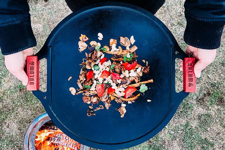 Svensktillverkad stekhäll i svenskt kvalitetskolstål, lättviktsmodell, som kommer med en specialanpassad väska med ett unikt bärsystem som är smidig att ta med sig på turen. Med bärremmar kan man smidigt använda väskan som en ryggsäck eller som en axelväska. Denna storlek är ypperlig till 4-6 personer och har ett brett användningsområde och man kan tillaga allt från en enklare lunch till en fin gourmetmiddag. Eller varför inte en dessert! I väskan ingår ett sittunderlag i återvunnen merinoullblandning. De justerbara bärremmarna har hakar som gör att dem lätta att ta av och på. På väskan finns även extra fästpunkter som gör att väskan kan kopplas till exempel till en vandringsryggsäck, kanot eller dylikt. Väskan är tillverkad av återvunnen polyester med florkarbonfri impregnering. Läderdetaljerna är av vegetabiliskt garvat läder från Tärnsjö Garveri. Information om stekhällen: • Stekhäll Ø 50 cm för 4-6 personer. Lättviktsmodell • För matlagning över öppen eld eller med gasolbrännare • Hällen är lätt skålformad för att passa många olika maträtter • Stålyta för bästa stekegenskap, rengöring och underhåll • 3 st avtagbara ben designade för smidig montering • Benlängd: 25 cm • Vikt: 3,7 kg • Tillverkad i Sverige av svenskt kolstål Information om Väska för stekhäll: • Avtagbara och justerbara bärremmar för väska, kan bäras som axelväska och ryggsäck. (Tillval) • Ytterficka för förvaring av tändmaterial, friluftskniven m.m. • Separat innerficka för benförvaring • Tvättbar innerpåse för stekhäll • Fack för sittunderlag. 1 x sittunderlag ingår i kitet. Upp till 5 sittunderlag får plats i väskan och kan köpas som tillbehör.