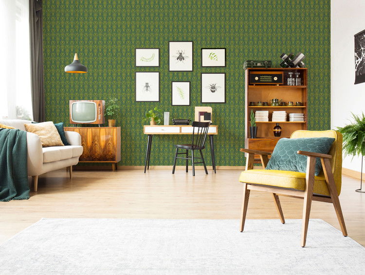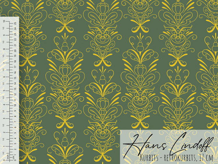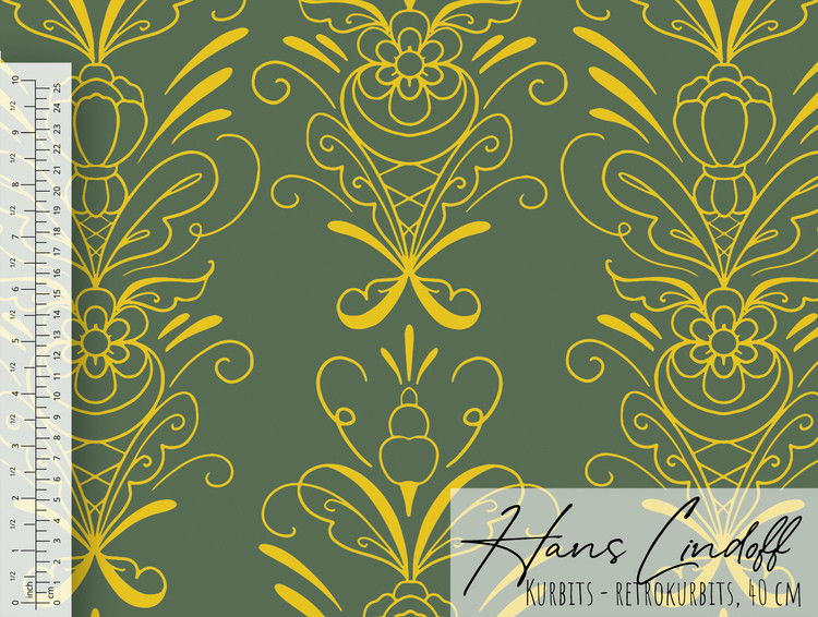 Klassiskt dalamönster i modern stil med retrovibbar. Modern kurbits av Hans Lindoff. Grön botten med mönster av gul kurbits. Du köper tapeten i färdiga våder i höjd 250 cm vilket motsvarar 1,1 / m2. Varje våd är 45 cm bred så mät och räkna ut hur många våder du önskar beställa. Priset är per våd. Önskar du annan höjd kontakta oss för beställning, pris 495:-/m2. Mönstret finns i två storlekar, 17 cm hög kurbits och 40 cm hög kurbits. Vådbredd: 45 cm, Material: Non Woven. Rekommenderat tapetlim: tapetlim för Non Woven. Att tänka på: Denna tapet trycks på beställning och omfattas därför inte av ångerrätten. Var noga med dina mått då tilläggsbeställning kan medföra nyansskillnader beroende på trycktillfälle. Om ditt mått är annorlunda än de färdiga alternativ du ser här så mejla in din förfrågan. Info@dalarnadesign.se. Tapeten skräddarsys i det mått du vill. Då slipper du betala för spillet. Bra, eller hur? Kom ihåg att mäta det bredaste och det högsta stället på din yta. Du behöver ändå som vanligt skära bort för hinder såsom fönster, dörrar och snedtak. Designern Hans Lindoff är född i Falun och har hållit på med konst sedan unga år. Han driver en tatueringsstudio - Purplehazstudio - där han ofta återkommer till kurbits i sina verk. Med Dalarna i hjärtat skapar Hans mönster som för honom är just Dalarna - Kurbits!