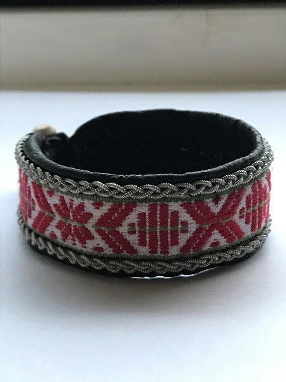 Beskrivning av Tennarmband Nusnäs Handsytt med tenn och dalaband