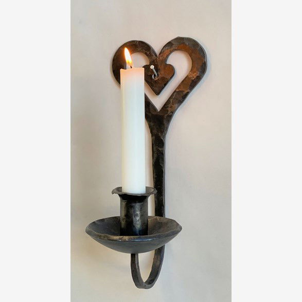 Vägglampett "Hjärta" i smide för kronljus. Höjd cirka 27 cm. Bredd 9 cm. * Lampettens skål sticker ut cirka 14 cm från väggen.