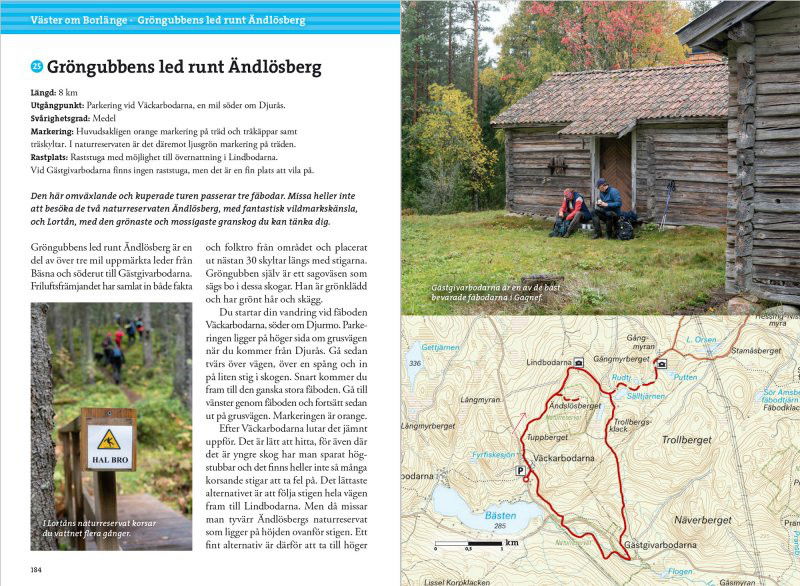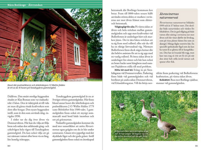 Här har du årets guidebok! 235 välfyllda sidor i ett smidigt format (18x12,5 cm) lätt att ta med sig för utflykter och vandring i naturen kring Falun och Borlänge! 32 olika vandringar i södra Dalarnas kulturbygder - från korta familjeturer till längre äventyr med övernattning. Naturen kring Falun och Borlänge är fylld av spår. Här följer du stigar som en gång trampades upp när människorna i bygden förde sina djur till fäboden. Andra stigar användes av dalfolket när de gick till Stockholm för att söka arbete. Och i världsarvet Falun har flera hundra års gruvdrift lämnat efter sig slagghögar, hyttplatser och vackra bergsmansgårdar. Spåren ger en extra dimension till bokens vandringar. En del av turerna i boken startar i eller strax utanför tätorten, andra har sin utgångspunkt lite längre bort. Du kan nå samtliga vandringar över dagen och vara hemma igen till kvällen, men några är bäst lämpade att göra med en övernattning, i raststuga eller eget tält. Längderna varierar mellan en och 34 kilometer och även du som vill vandra tillsammans med barnen hittar passande turförslag. Författaren Karin Runesson är biolog och älskar friluftsliv. Hon är bosatt i Falun och har arbetat med skogs- och naturvårdsfrågor på Borlänge kommun. För Calazo har Karin tidigare skrivit den mycket populära Barnens utebok.